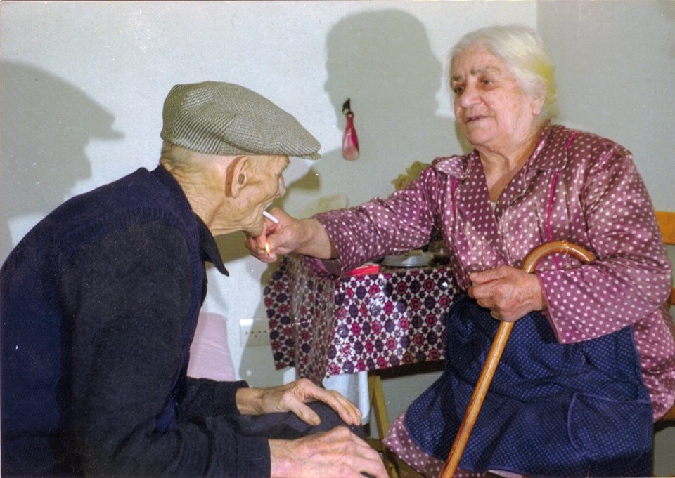 Το άναμμα ενός τσιγάρου. Ο Τρυφεριγιάννης ( Ιωάννης Λιανής) με τη γυναίκα του